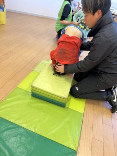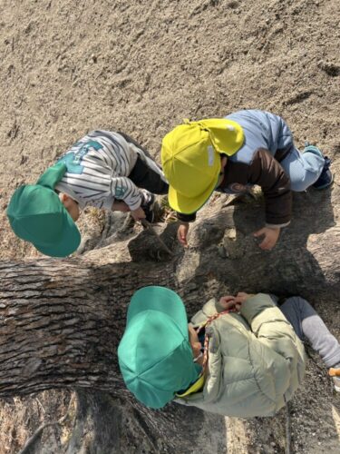 「先生押してあげるから乗ってー」と選手交代です👀みんなで力を合わせて一生懸命ジャングルを押していました💪