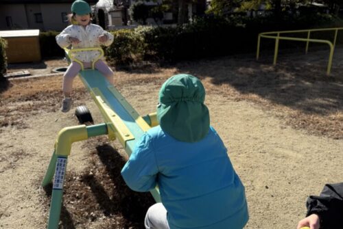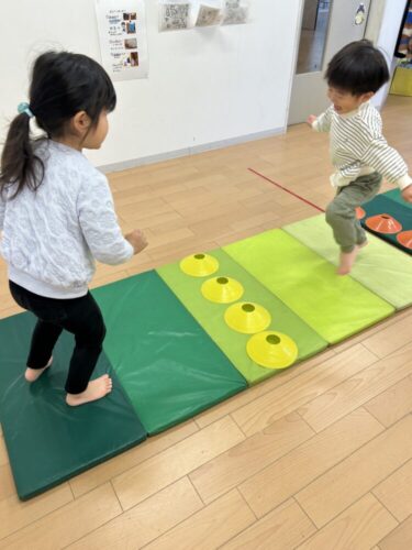「次はこっちで遊ぼー‼️」とお友だちを誘ってシーソーへ💨「わたし上行っちゃった❗️」「僕上行っちゃった‼️」と交互にお話ししながら遊ぶ姿がとても可愛かったです🥰