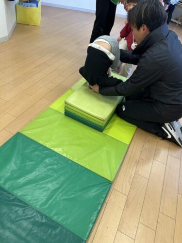 何度も繰り返し滑うさぎ組さん🐰途中でダンボールから落ちて、ゴロゴローっと転がっていっても「わー落ちちゃったー‼️」と笑いあっていました😊