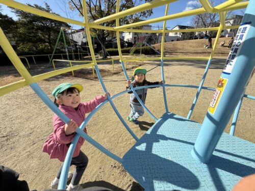すべり台にブランコ、グローブジャングルジムにシーソーとたくさんの遊具で遊んで、寒さを吹き飛ばすほどいっぱい身体を動かした1日でした☀️