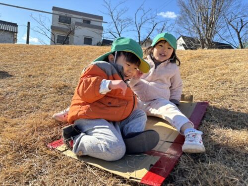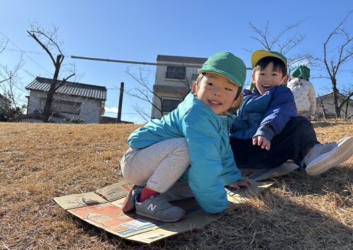 今日もとても寒い1日になりました❄️身体を動かしていっぱい温まろう‼️ということで、ダンボールを持って植田山公園へお散歩に行きました🛝