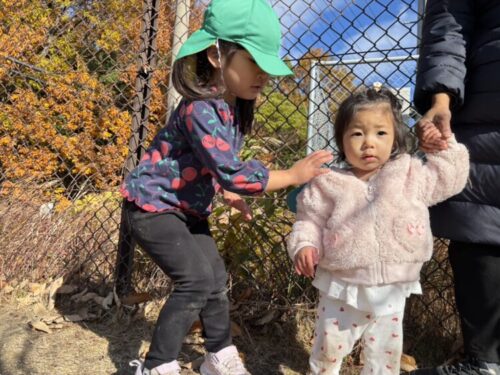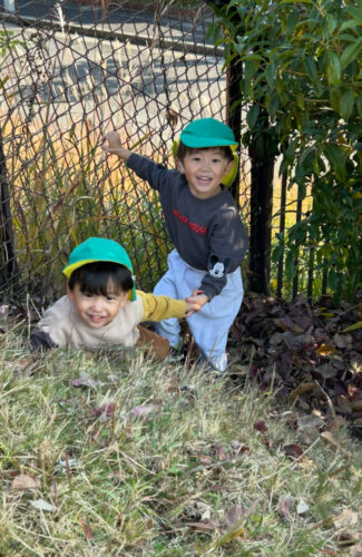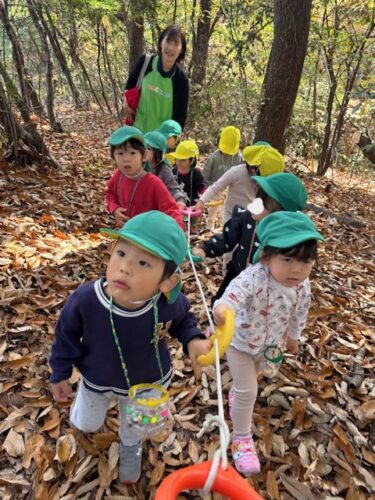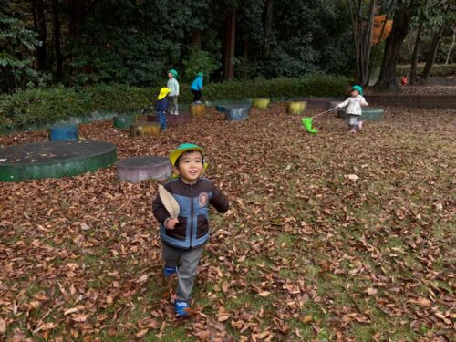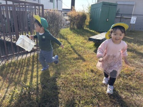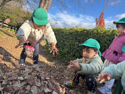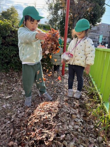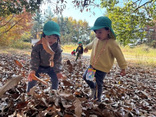 風が吹くとたくさんの落ち葉が落ちてきたので、みんなで落ち葉キャッチも楽しみました![]()