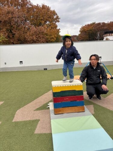跳び箱にのぼって、そこからジャンプ