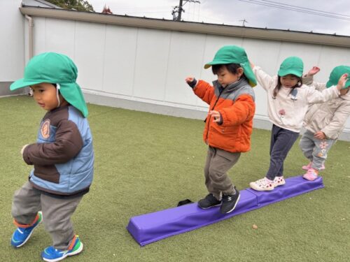 運動会のおさらいで、前回りや平均台、鉄棒などをやったのですが、みんなまだばっちり覚えていて上手に取り組んでいました![]()