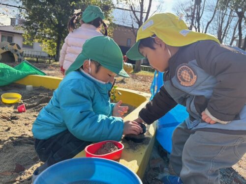 「ドングリ拾ってきたよ~!」とお砂場へお届けしている子もいましたよ![]()