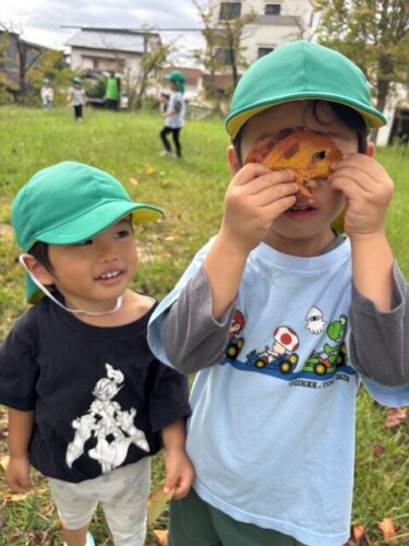 穴の開いた落ち葉は顔みたいだったね![]()