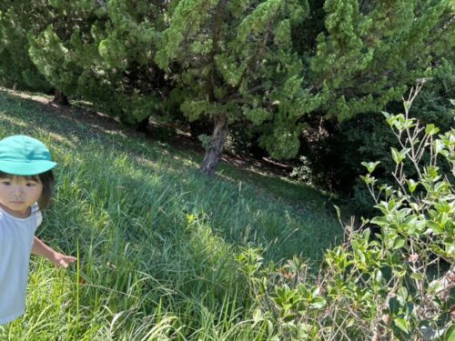 今日は明日の運動会の体育館の前まで下見に行ってから、植田山公園上で遊びました![]()