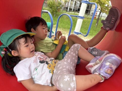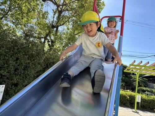裏山広場に到着です🙌ひよこ組とあひる組さんたちとゆったり遊んでいきます💪