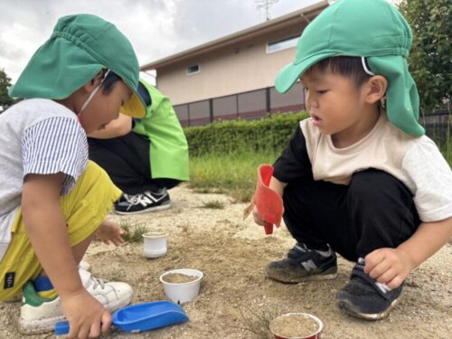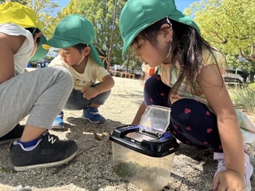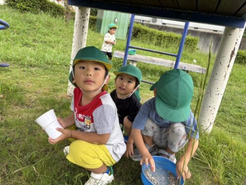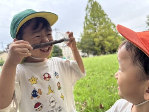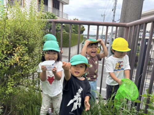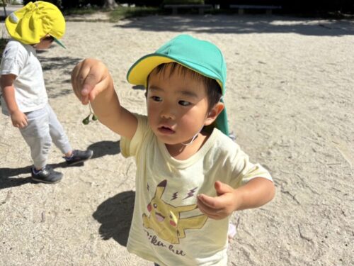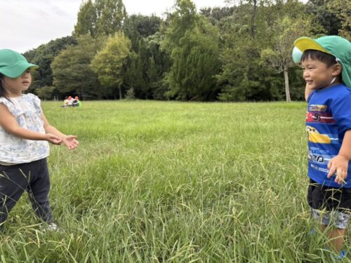 バッタさんを捕まえました🦗手に持ったバッタを「見て見て〜‼️」と友だちに見せてあげていました☺️