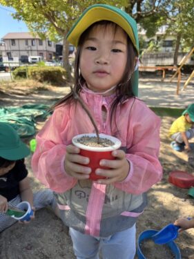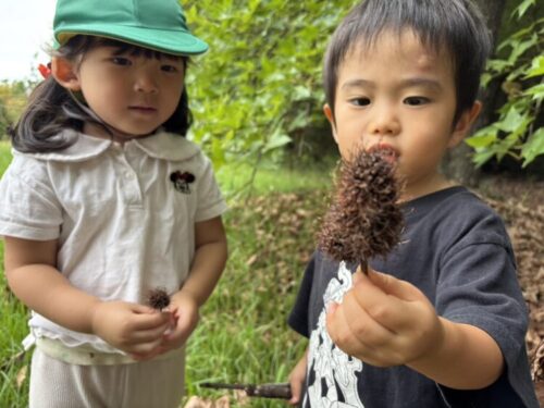 トゲトゲした木の実を発見👀枝にたくさん着いているものを探して、保育園まで大事に持って帰りましたよ😊