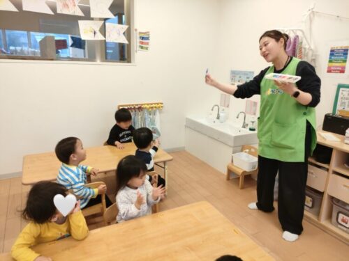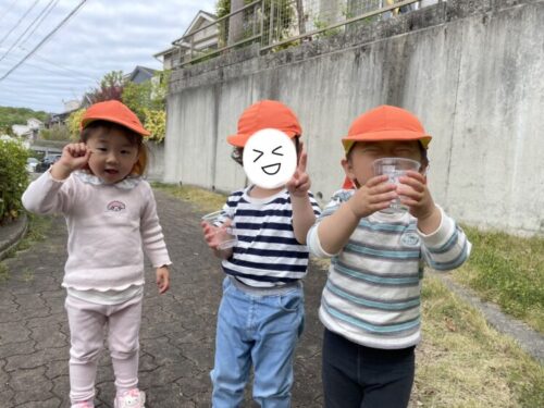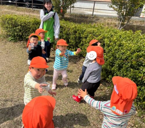 みんなマイカップを持って虫さんや葉っぱ、豆を探していました👀