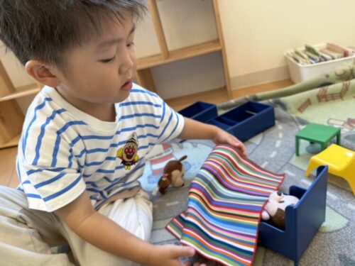 毎週水曜日は体操教室の日🤸おやつにトイレに水着の着替えで大忙しのうさぎ組🐰準備もバッチリ終わり、ぱんだ組へ出発〜💨