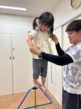 最後は鉄棒の上を歩きます😳先生に手を借りて渡り切ることが出来ました🙌