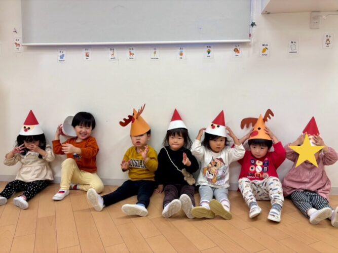 まずはリトミックでクリスマスの歌を歌ったり、サンタさんになりきってリズム遊びをしました🎅