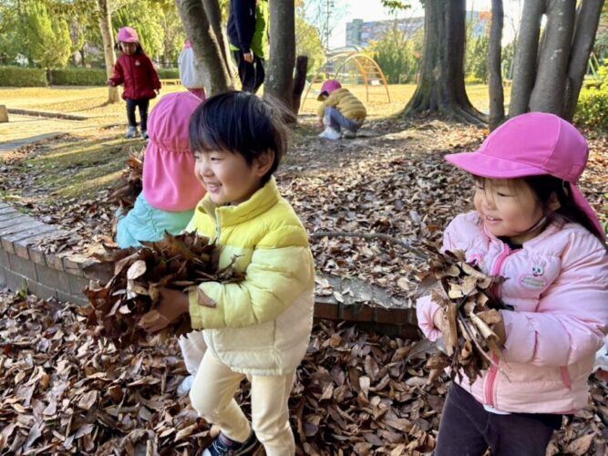 落ち葉遊びをしたり🍂