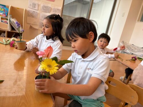 ぱんだ組さんは初めてのフラワーアートです![]()