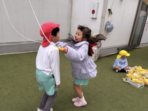 今日は劇遊びごっこをしてから、屋上チームとお部屋チームに分かれて過ごしました❣️