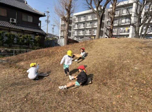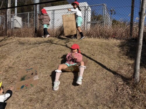 段ボールそり滑りを楽しむお友だち![]()