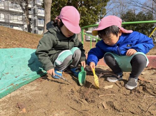 「大きなカブだ!」砂場から出ていた枝を掘って抜こうとするお友だちもいましたよ![]()