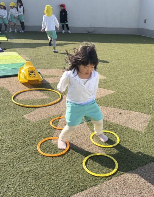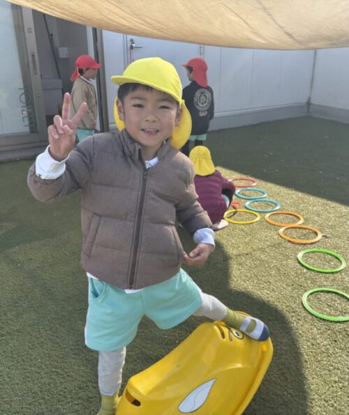 くま組のお兄さんがサーキット遊びコーナーを作ってくれると、とっても楽しそうに遊ぶお友だちたちでした😇