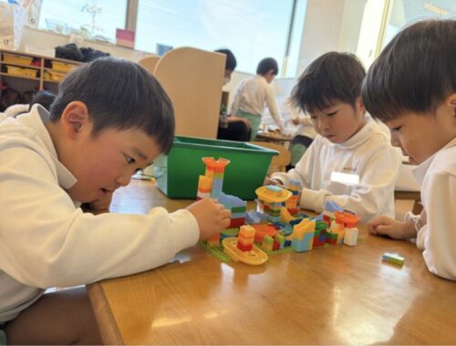 ビー玉コースターを夢中で遊ぶお友だちです