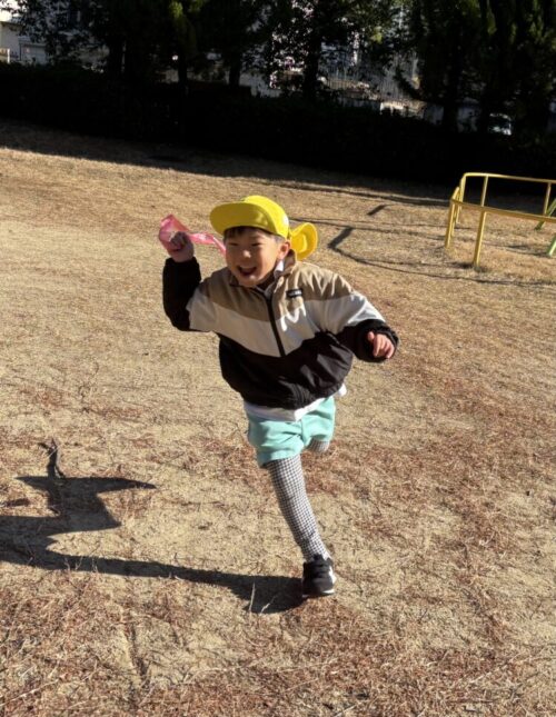 自分で作った凧を持っていくと、元気いっぱい凧揚げを楽しんでいましたよ🪁✨
