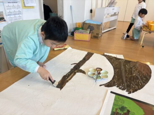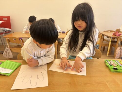 そのあと、お部屋では早速壁面制作をしました‼️集中して色を塗っていましたよ♪