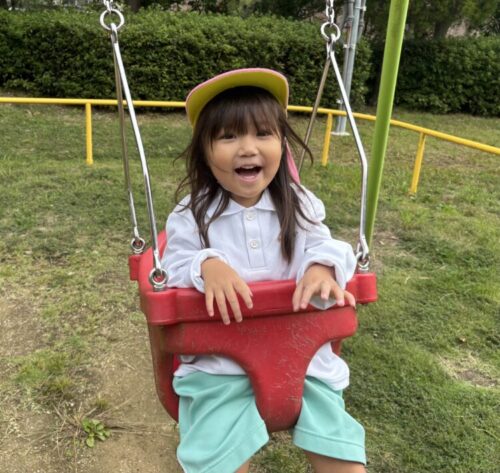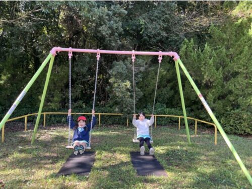 ブランコを思い切り漕いで気持ちよさそうなお友だちも