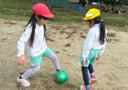 ボール遊びを楽しむお友だちキャッチボールや追いかけあっこをして楽しんでいましたよ