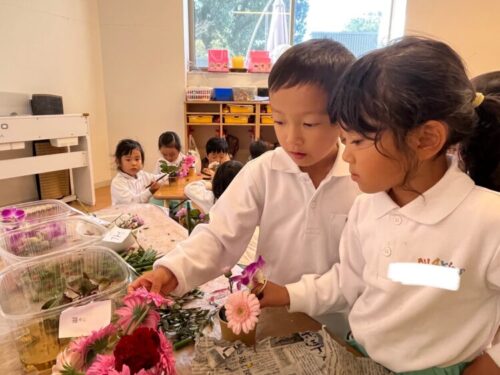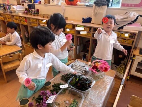 給食後にはフラワーアートをしました🌷