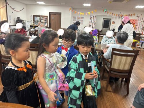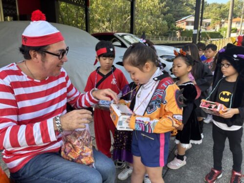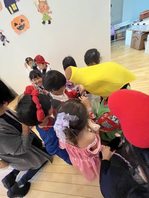大きな声で「トリックオアトリート🍭」と言ってお菓子をもらうことができました