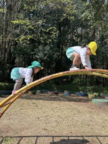 「太鼓橋一緒にやろ🎶」とお友だちと一緒にやる姿がありました👀