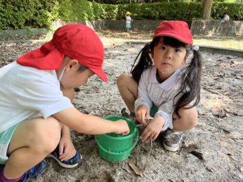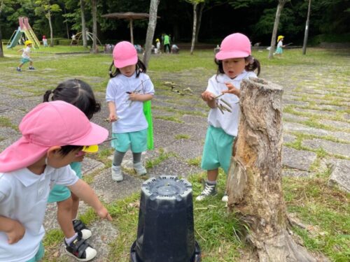 ぱんだ組のお友だちはお料理を作ったり、ダンゴムシを探したりと元気いっぱいに遊んでいましたよ![]()