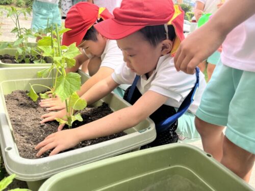 くま組さんが野菜を植えました🥒🍅🍉