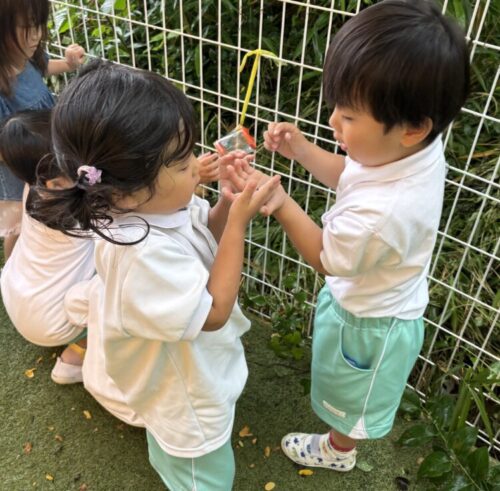 今日も虫をたくさん捕まえることができて嬉しそうなお友だち![]()