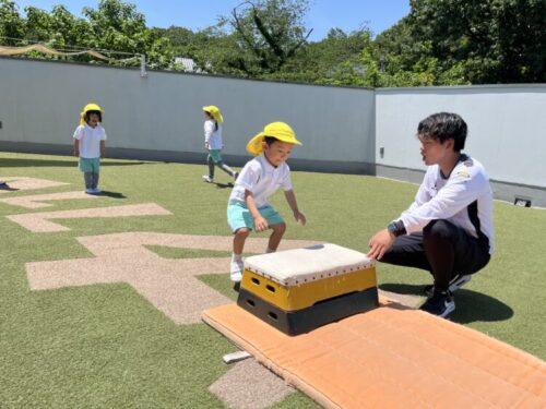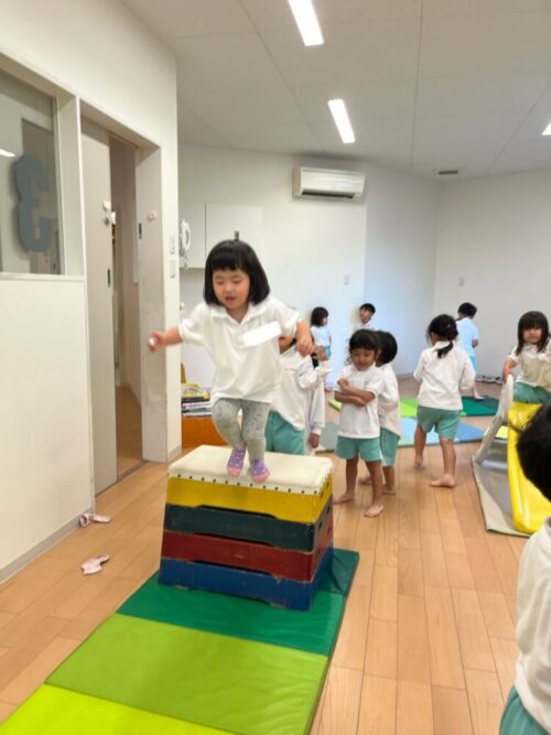 きりん組さんは2段の跳び箱を飛びました![]()