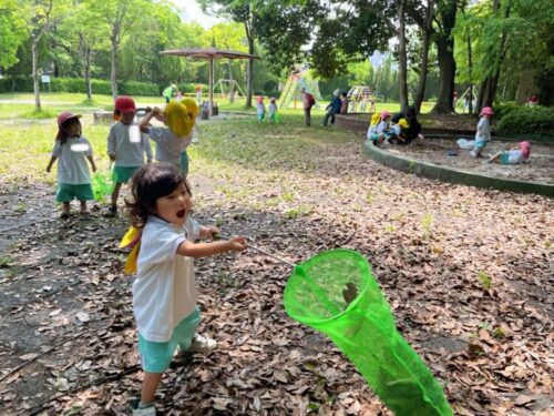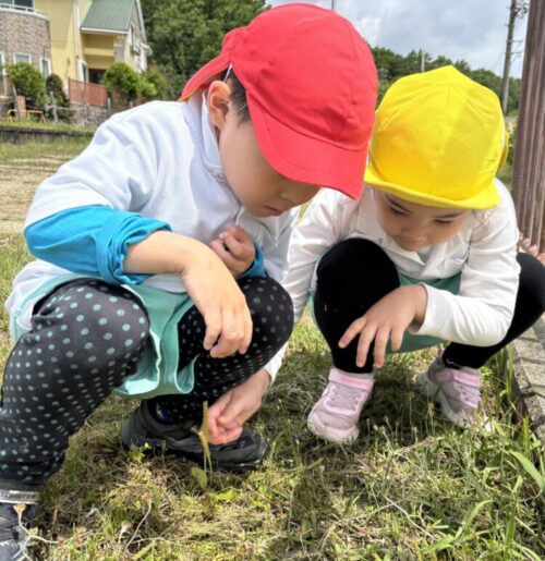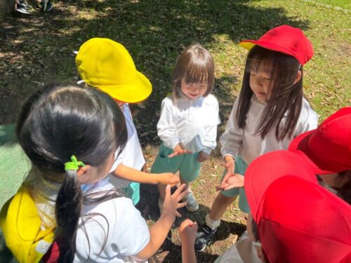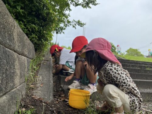 早速だんごむしを見つけると、教えてくれるお友だち![]()