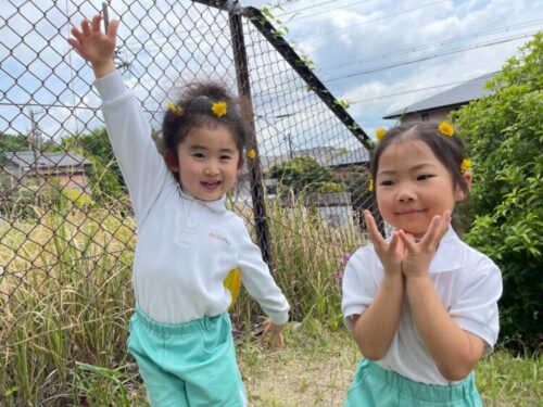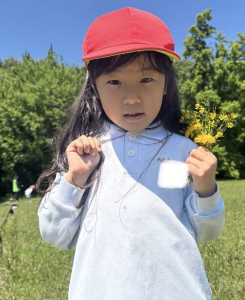 タンポポもたくさん咲いていて嬉しそうに摘むお友だち🩵