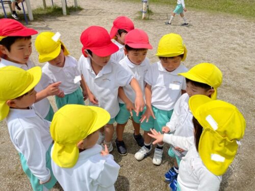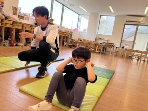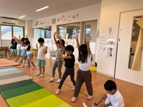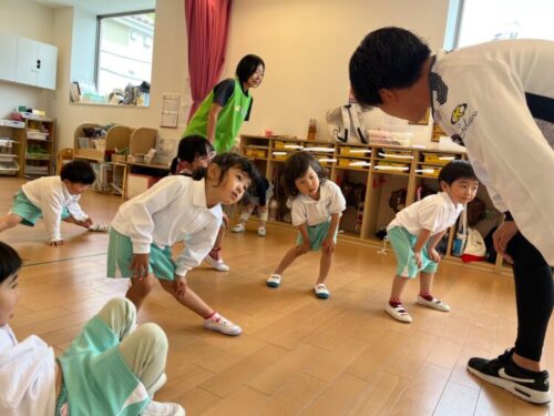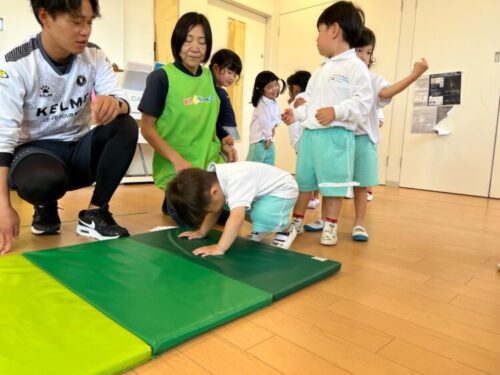 「せーの!」お友だちと手を繋いで前転をやりました![]()