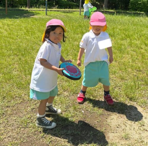 お友だちとフリスビーを楽しんだり、お花摘みに夢中なお友だちがいました![]()