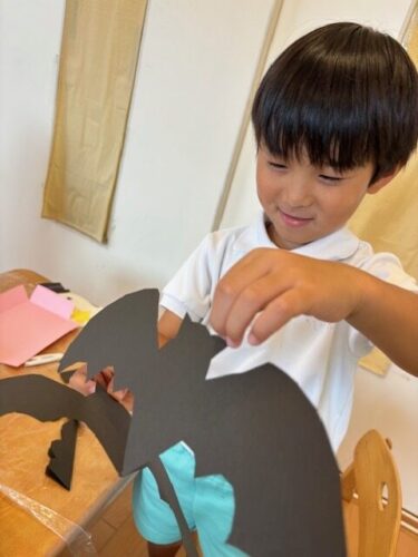 体操教室までの時間は、ぬりえをしたり、ハロウィンバッグの製作をしたりして好きな遊びを選んで過ごしました😄