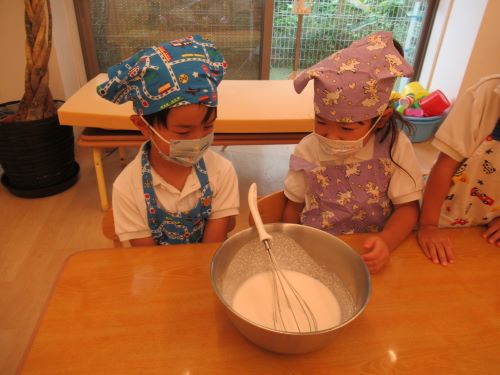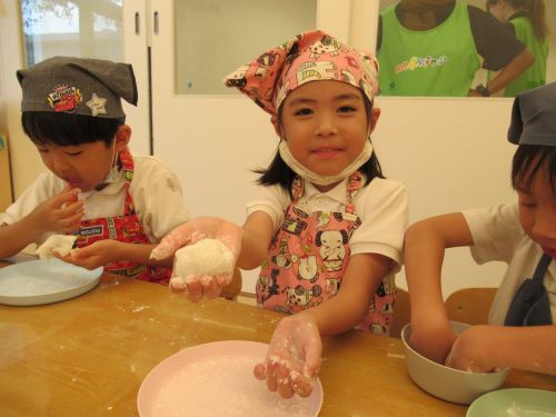 今日はクッキングを行いました茶の湯で和菓子を食べて、和菓子に興味を持った子どもが多かったため、大福づくりにチャレンジ