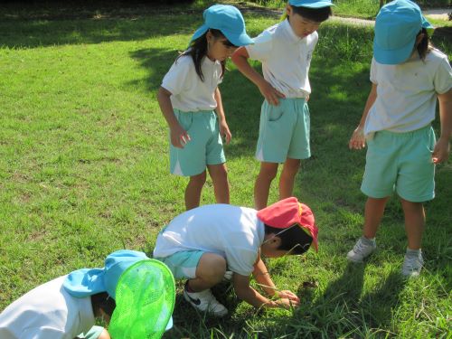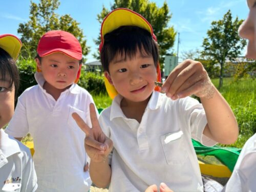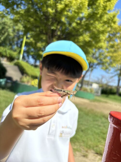 バッタ探しに夢中のみんなは、一生懸命捕まえようと頑張っていました😆