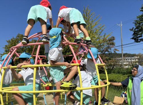 回転ジャングルジムでは、ルマヤ先生と「Are you ready?」「yes!